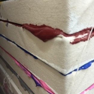 Starting from a single canvas and then spiraling into a full wall of them i was able to walk amongst the canvases which had brightly coloured paints being squeezed out the gaps between the canvases I was facinated by the colours and how they mixed i detailed as many as I could