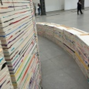 While at the Hamburger Bahnhof one peice in particular caught my attention over everything else Richard Jackson’s 5050 Stacked Painting.