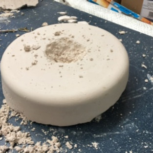 Although the plaster circles i made were a success, I was more interested in the circular block that was made by the spare plaster setting inside a bucket thinking about the interest in holes i had when i was creating the plaster circles i decided to create a Hole in the circler block by hitting it with a hammer